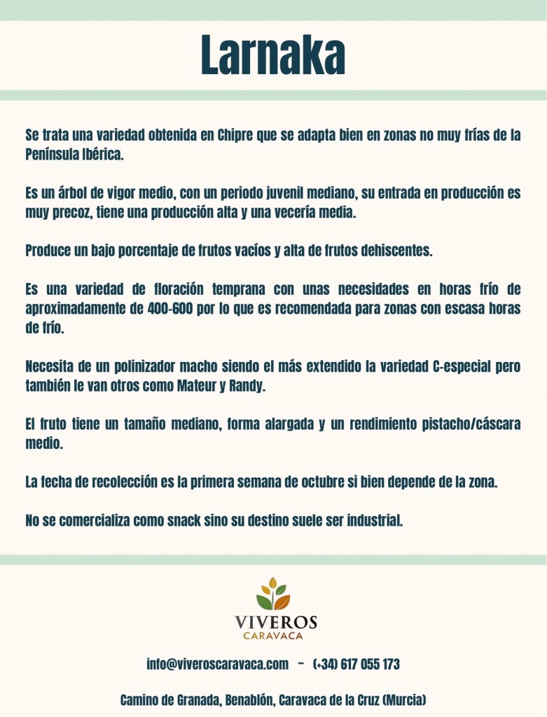Asimismo, para la maduración del fruto, el pistacho necesita calor y un ambiente de humedad relativa baja.